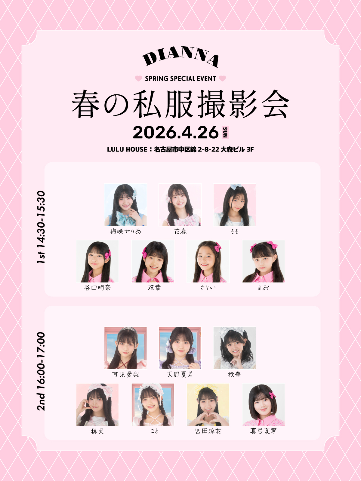 【DIANNAプロジェクト】春の私服撮影会 開催決定!